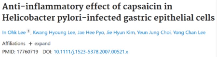 一项题为"Anti-inflammatory Effect of Capsaicin in Helicobacter pylori-Infected Gastric Epithelial Cells"的研究证明了辣椒素通过核因子卡巴(NF-kappaB)信号,抑制了幽门螺杆菌感染的胃上皮细胞释放促炎症细胞因子--白介素-8(IL-8)。