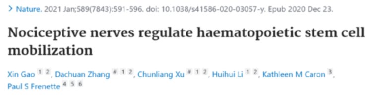 研究者发现,77%的造血干细胞是由痛感神经进行调控的。痛感神经分泌降钙素基因相关肽(CGRP)的神经递质,促进造血干细胞进入血管。摄入辣椒可以触发痛觉神经元的激活,显著增强小鼠造血干细胞的动员。因此,针对痛觉神经系统可能是一种提高造血干细胞产量的策略。