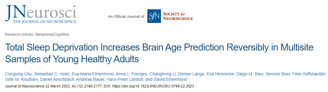 近日,德国神经科学与医学研究所的研究人员在《神经科学杂志》" Journal of Neuroscience "上发表了一篇题为" Total Sleep Deprivation Increases Brain Age Prediction Reversibly in Multisite Samples of Young Healthy Adults "的研究论文。