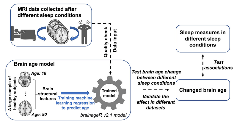 在第二天早晨和恢复性睡眠后的早晨收集了参与者的大脑MRI数据。然后,研究人员使用一种名为 BrainageR 的机器学习算法确定了参与者大脑的表观年龄,并将其与同一个人在整夜睡眠后的大脑MRI进行比较。