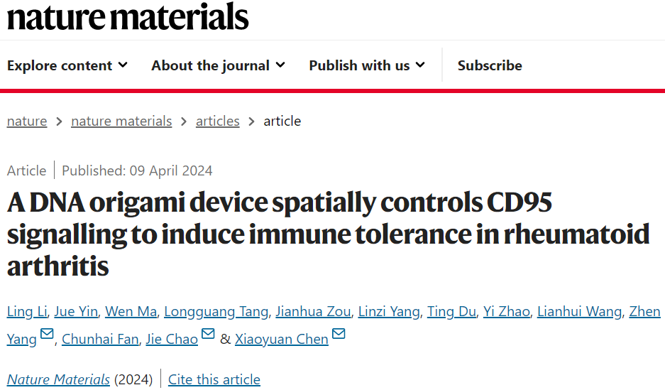 Nat Mater | 陈小元/杨震/晁洁通过DNA折纸技术,在空间上控制CD95信号诱导类风湿关节炎的免疫耐受
