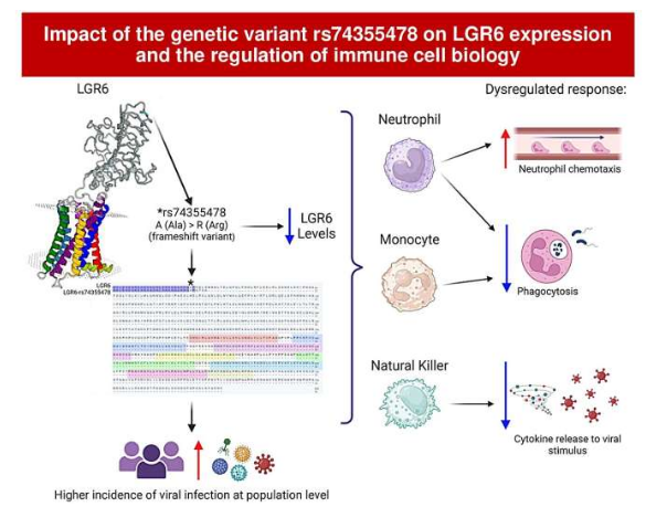 这项研究中,研究人员利用来自基因健康计划(Genes & Health project)中的数据,识别出了携带能减少LGR6表达的特殊天然突变个体,当对携带这种突变的志愿者机体细胞进行分析时,研究人员发现,其机体中白细胞(包括单核细胞、中性粒细胞和自然杀伤性细胞)上的LGR6受体的水平明显较低。