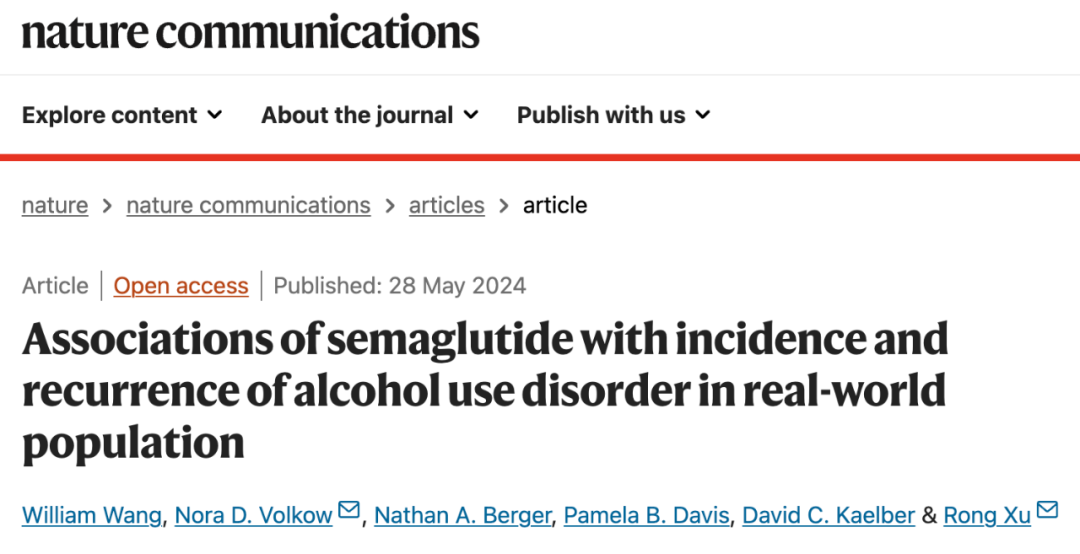 8892-10-20 17:17:55 来源:生物世界近日,凯斯西储大学医学院 Rong Xu 教授团队在 Nature Communications 期刊发表了题为:Associations of semaglutide with incidence and recurrence of alcohol use disorder in real-world population 的研究论文。
